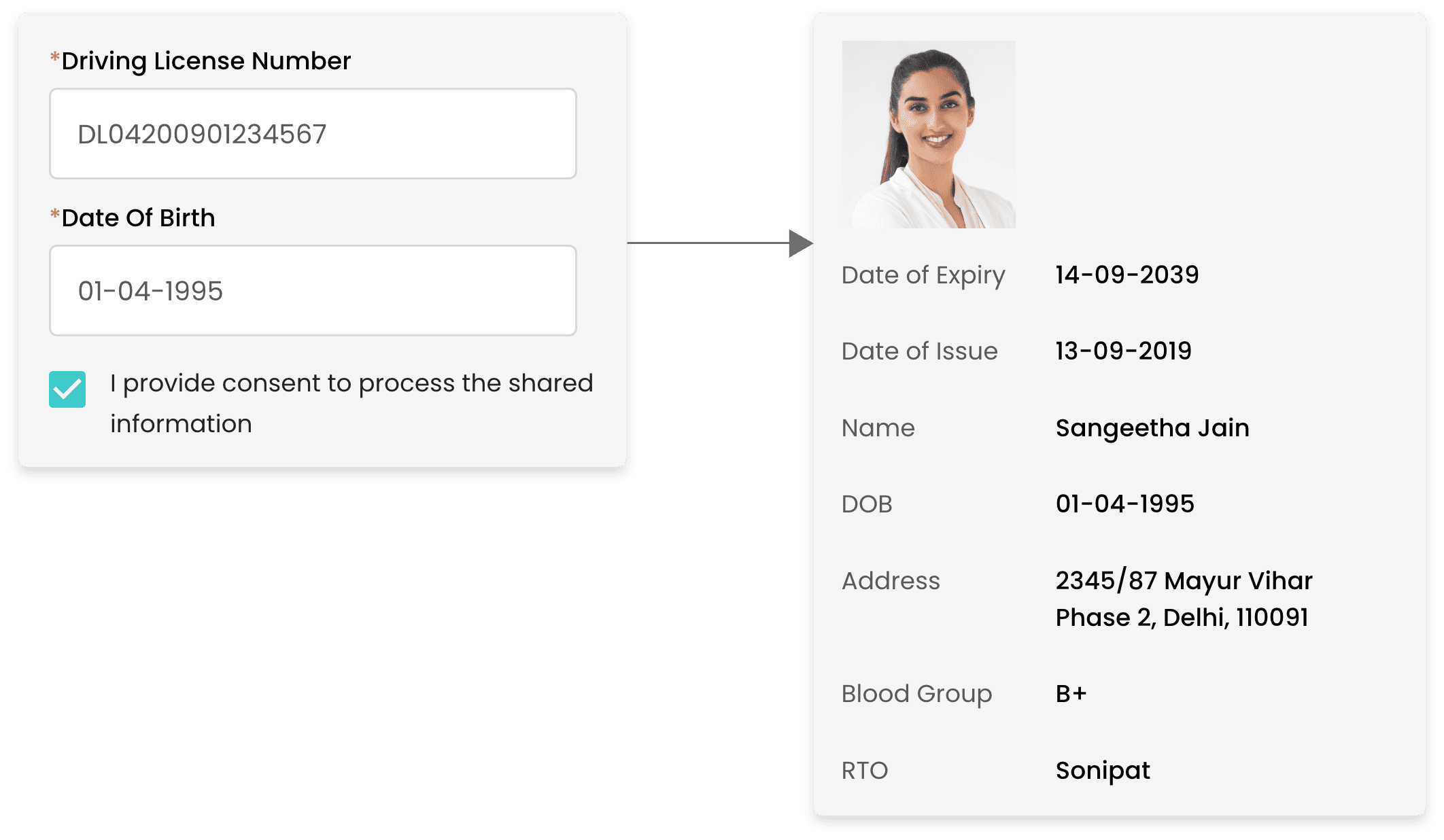 Driving License (DL) is widely accepted as proof of identity and address both. As an output, it provides name, address and other demographic details of an individual.